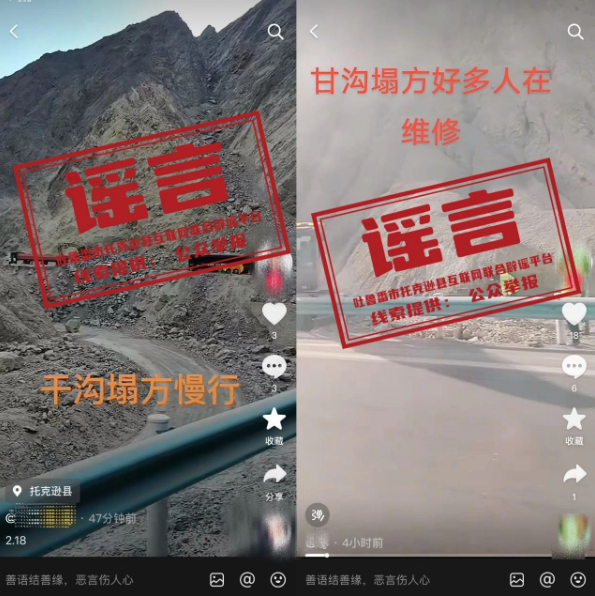 2月18日,部分网民在社交媒体发布“G3012线吐鲁番到库尔勒甘沟路段发生塌方,交通中断”相关信息,引发网民关注。